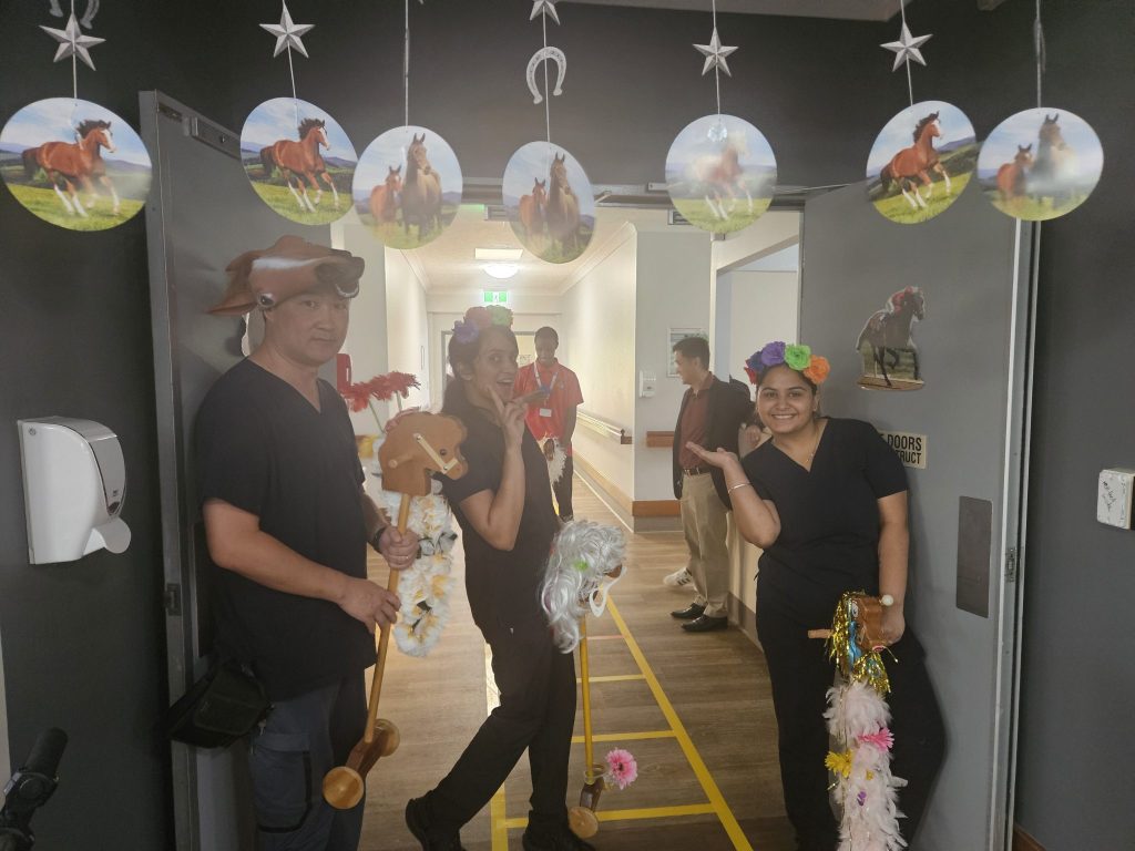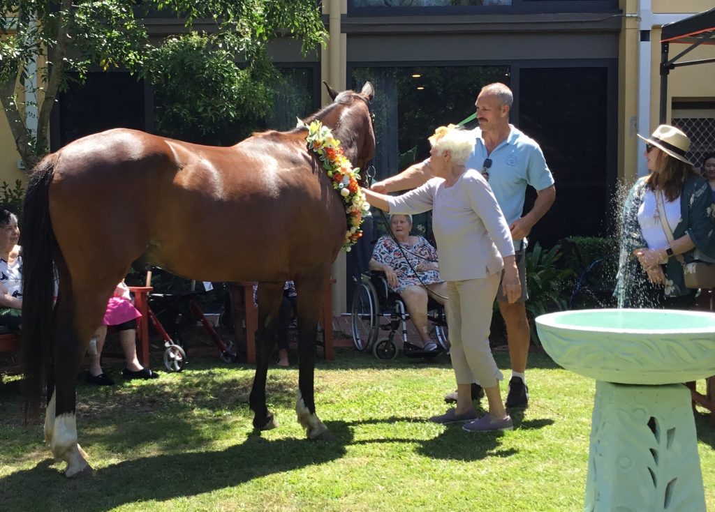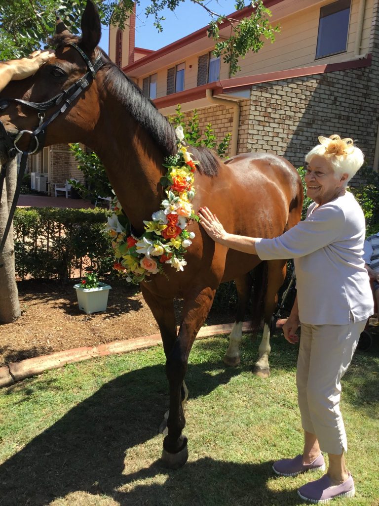 Mt Gravatt Aged Care Residence also had an eventful day celebrating the Melbourne Cup, with a morning tea filled with fun games. In the afternoon, everyone had the chance to pat a very friendly real-life horse!