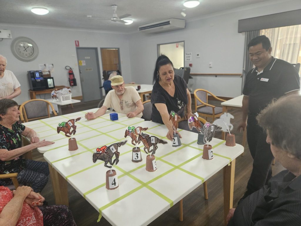 Our Pimpama Aged Care Residence even brought some of the Melbourne Cup’s competition to their own facility, with the residents and staff getting involved in all sorts of fun games and activities. Friendly competition is always a great way to bring some fun and laughter to our residents, with everyone eager to beat their mate!