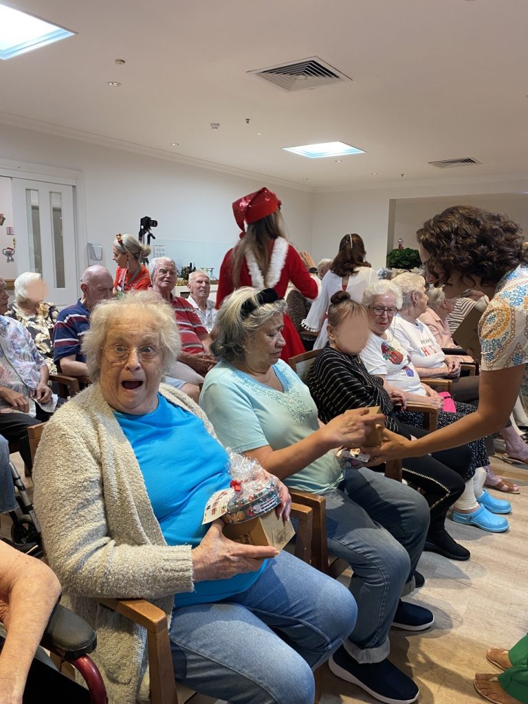Later, Cypress Gardens outdoor areas came alive with a dazzling display of Christmas lights, music, and glow sticks. Volunteers from Jireh Impact Foundation, IDE Church, and the Malaysia Singapore Gold Coast Community group brought additional festive spirit with special performances, and each resident received a beautiful gift, with five lucky winners taking home spectacular Christmas hampers!
