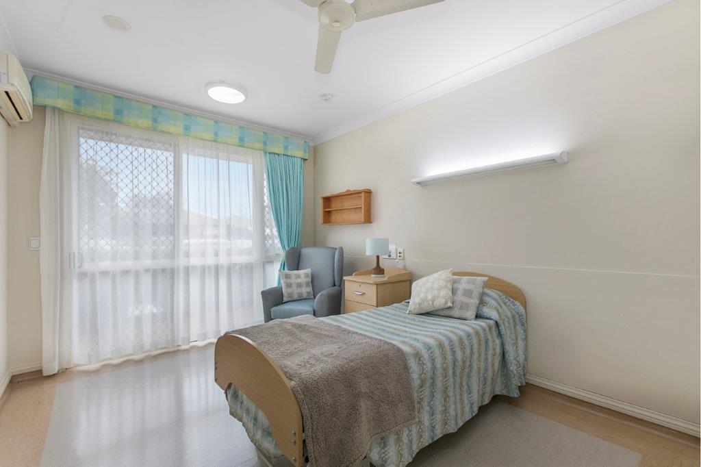 Inclusions: king-single automated bed, recliner chair, overbed table, reverse cycle air-conditioning, ceiling fan, wall-mounted TV, armchair for visitors, ample storage, emergency call system.
