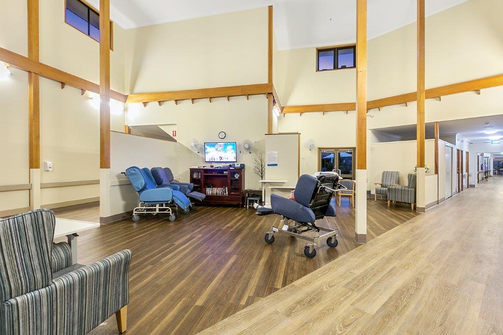 Inclusions: king-single automated bed, recliner chair, overbed table, reverse cycle air-conditioning, ceiling fan, wall-mounted TV, armchair for visitors, ample storage, emergency call system.