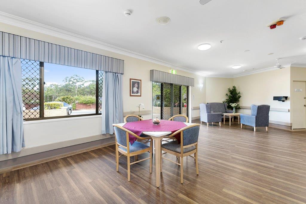 Inclusions: automated bed, overbed table, reverse cycle air-conditioning, ceiling fan, armchair, space for personal small furniture items, wall mounted TV, emergency call system.