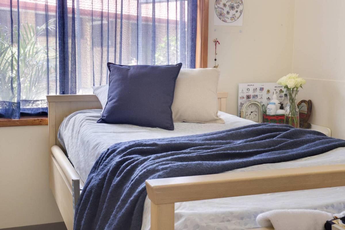 Inclusions: single bed, overbed table, individual reverse-cycle air-conditioning, ceiling fan, armchair, wardrobe, space for personal small furniture items, wall-mounted TV, emergency call system.