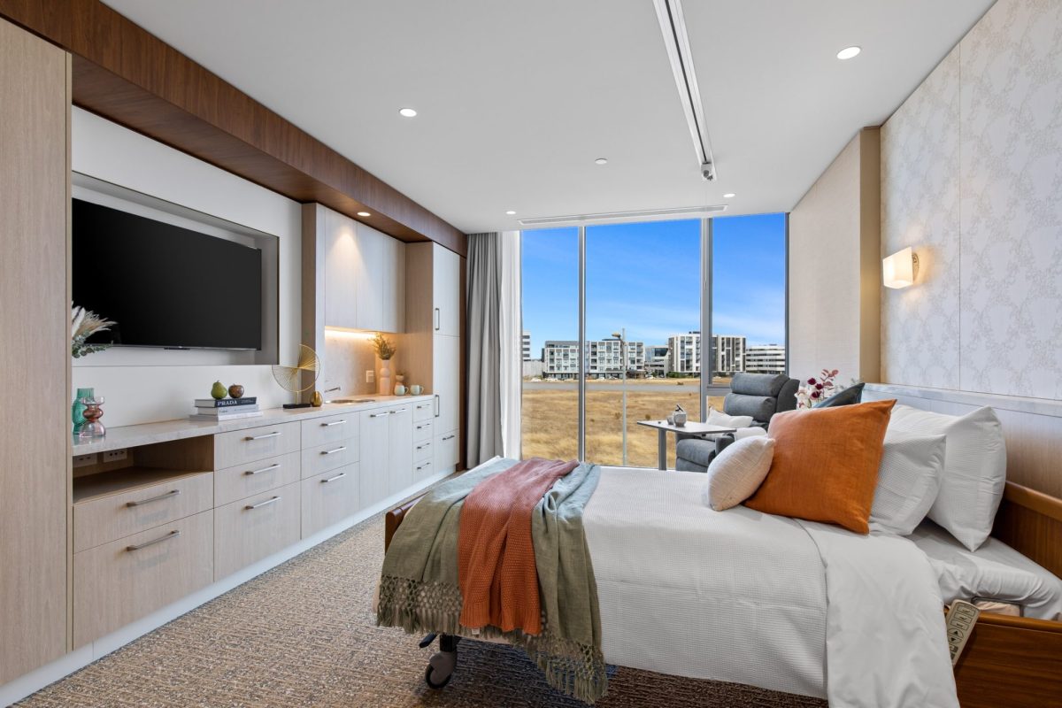 Inclusions: automated king-single bed, electric recliner, overbed table, individual climate-controlled air conditioning, ample storage, armchair for visitors, wall-mounted TV, mini-fridge, emergency call system.