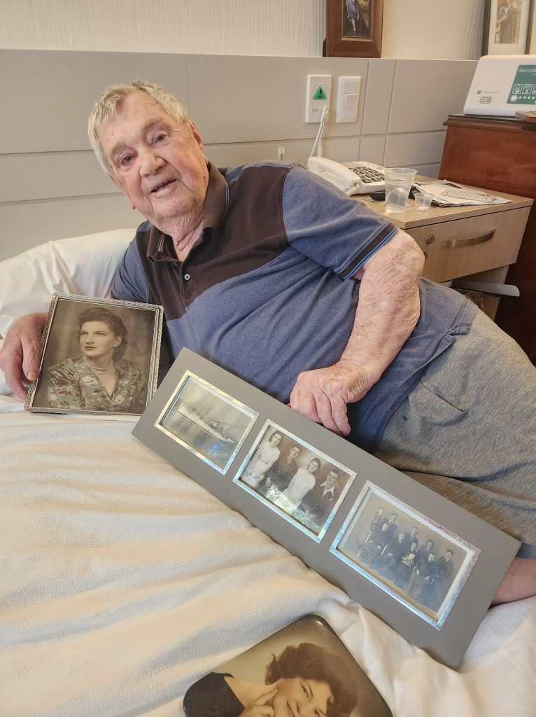 There is another photo on the board of Hugo’s family; a picture of the ship that would transport them halfway across the world to start a new life in Australia. Anna and Hugo would finally settle in Moree in NSW, where he grew up, met the love of his life in his late wife Pam and raised two daughters, Tina and Belinda.